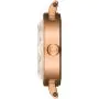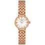 Biała tarcza tego zegarka stanowi piękny kontrast wobec różowego złota koperty, co nadaje mu elegancji i kobiecego uroku. Masa perłowa, z której wykonano tarczę, nadaje jej niezwykłego blasku i delikatnie mieni się w słońcu. To prawdziwie luksusowy detal, który podkreśla biżuteryjny charakter tego zegarka. Wskazówki i indeksy na tarczy są pokryte farbą luminescencyjną, co pozwala na odczyt czasu nawet w ciemności.