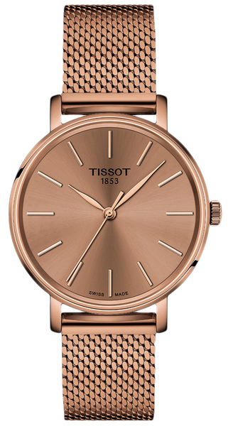Zegarek damski TISSOT T143.210.33.331.00 to klasyczny dodatek, który zachwyca swoją elegancją i precyzją. Jest to zegarek rose gold z serii Tissot Everytime Lady. Jak sama nazwa wskazuje, jest idealny do noszenia na co dzień. Jest niczym kameleon — dopasujesz ten damski zegarek na bransolecie do każdej stylizacji.