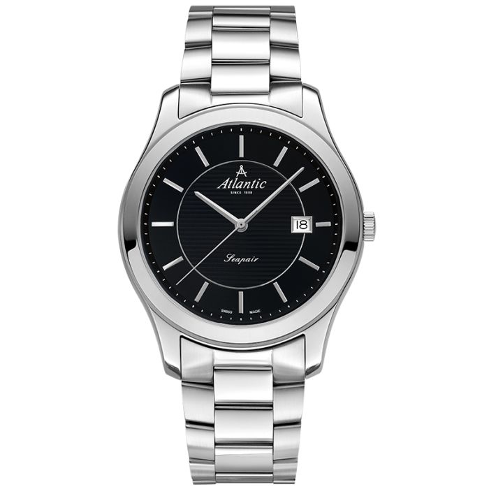 Koperta zegarka Atlantic Seapair 60335.41.61 wykonana jest z wysokiej jakości stali szlachetnej, która zapewnia trwałość i odporność na korozję. Okrągła koperta o szerokości 42 mm i grubości 9 mm doskonale komponuje się z klasyczną stalową bransoletą, tworząc spójny i elegancki wygląd. Srebrny kolor koperty i bransolety harmonizuje z czarną tarczą, dodając zegarkowi wyrafinowanego charakteru.
