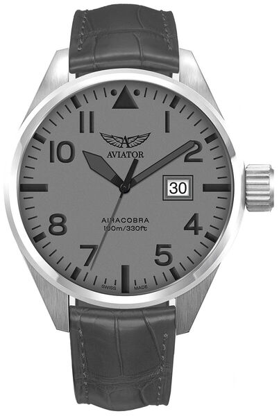 Producenci męskiego zegarka Aviator Airacobra P42 V.1.22.0.150.4 przy projekcie koperty zdecydowali się na klasyczny kształt zegarków vintage z lat 40, oraz na elegancką barwę srebra. Przy jej odlewie wykorzystano nierdzewną stal szlachetną 316L, oferującą wyjątkowy poziom odporności na uszkodzenia mechaniczne i gromadzenie się korozji.