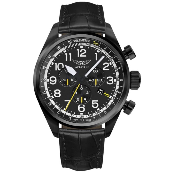 Wizualnie wzorowany na układzie kokpitu samolotu, zegarek męski Aviator Airacobra P45 Chrono V.2.25.5.169.4 może pochwalić się gustowną, matową tarczą w kolorze czarnym. Jej bogata zawartość została dokładnie przemyślana, i każda z funkcji jest doskonale widoczna.
