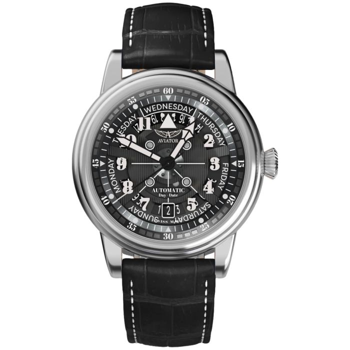 Czerpiący pełnymi garściami inspirację z kultowego samolotu Douglas DC-3, męski zegarek lotniczy Aviator Douglas Day-Date V.3.36.0.284.4zadba o Twój wizerunek swoją wyjątkową stylistyką. Kombinacja niezłomności i pasji do lotnictwa dodają czasomierzowi unikalnego charakteru.