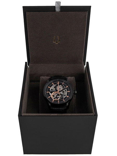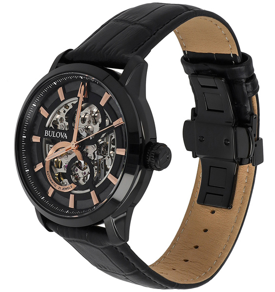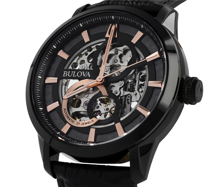 Bulova Automatic Skeleton 98A283, czyli amerykański zegarek automatyczny, utrzymany w eleganckim, klasycznym stylu. Pierwszorzędny wybór dla mężczyzny o wyrafinowanym guście.