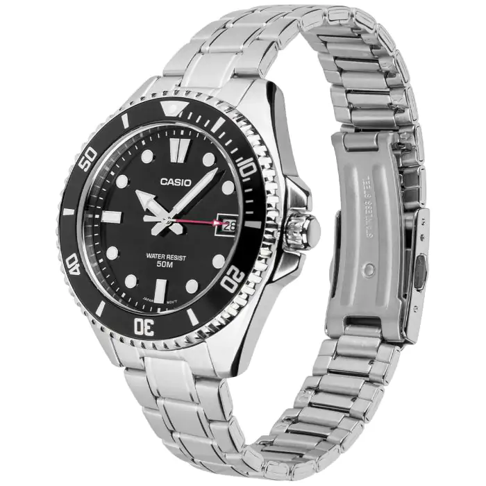 Zegarek męski Casio MDV-10D-1A1VEF został starannie wykonany z trwałej stali szlachetnej 316L, która wyróżnia się niezwykłą odpornością na korozję oraz gwaranuje wytrzymałóść zegarka. Jego czarna koperta o szerokości 39 mm prezentuje się imponująco na nadgarstku, emanując pewnością siebie i sportowym duchem.