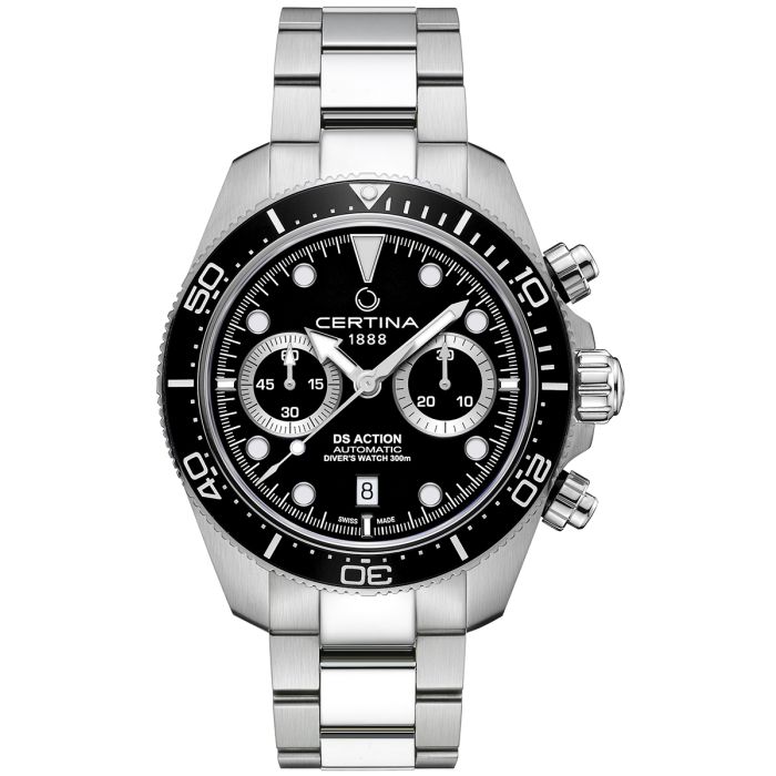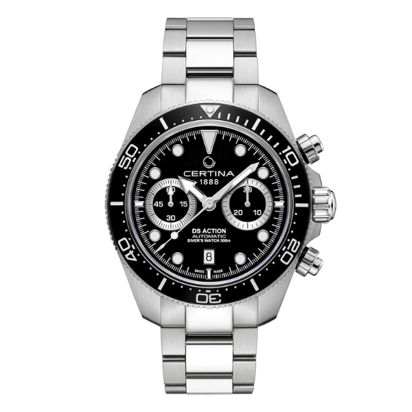 Certina C032.827.11.051.00 DS Action Diver Chrono to elegancki i wytrzymały zegarek męski typu diver, zaprojektowany z myślą o osobach, które cenią sobie sportowy styl i niezawodność. Jego szwajcarskie pochodzenie potwierdza najwyższą jakość wykonania, a wysoka wodoszczelność na poziomie 300 m (30 barów) czyni go idealnym wyborem dla nurków i miłośników sportów wodnych. Łącząc funkcjonalność z eleganckim designem, ten model sprawdzi się nie tylko podczas ekstremalnych aktywności, ale również jako stylowy dodatek na co dzień.