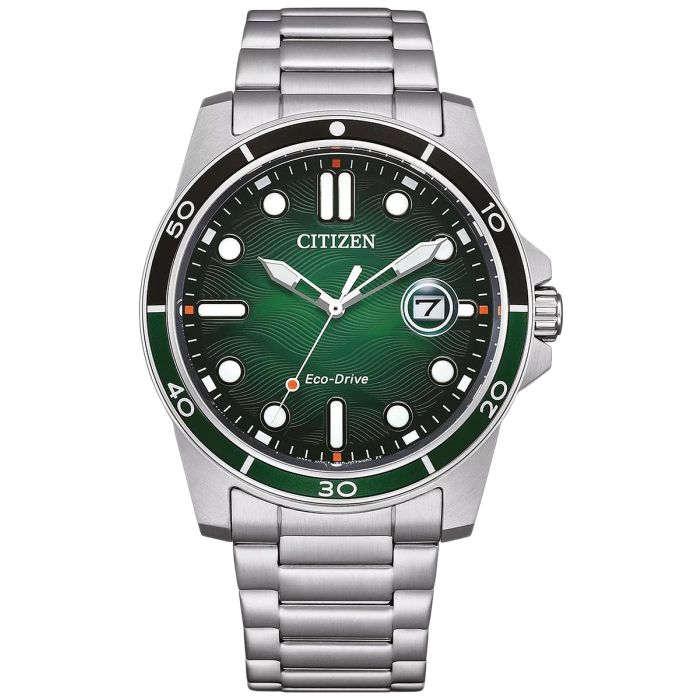 CITIZEN Marine AW1811-82X to męski zegarek, który łączy klasyczny styl z nowoczesną technologią Eco-Drive. Dzięki mechanizmowi solarnemu, zegarek ten nie wymaga wymiany baterii, co czyni go praktycznym i ekologicznym wyborem. Jego srebrna stalowa koperta i bransoleta nadają mu elegancji, a zielona tarcza dodaje niepowtarzalnego charakteru. Zegarek jest doskonałym wyborem zarówno na co dzień, jak i do formalnych stylizacji, oferując jednocześnie solidność i precyzję wykonania.
