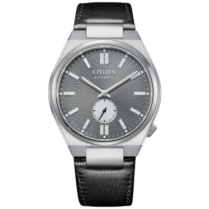 Szara tarcza zegarka CITIZEN NK5010-01H dodaje mu subtelnego i nowoczesnego charakteru. Analogowy odczyt czasu jest prosty i czytelny, a dzięki powłoce luminescencyjnej na wskazówkach, czas można odczytać nawet w warunkach słabego oświetlenia. Zastosowanie szafirowego szkła zapewnia doskonałą ochronę przed zarysowaniami, co jest szczególnie istotne w codziennym użytkowaniu. Tarcza zegarka pozostaje zawsze w idealnym stanie, a szkło dodatkowo wzmacnia jego elegancki charakter.