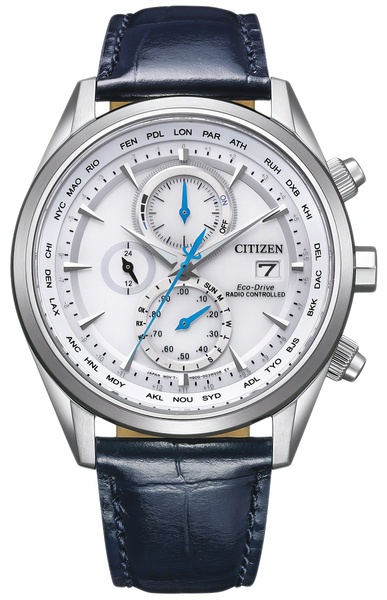 Zegarek z chronografem CITIZEN AT8260-18A zachwyca nietuzinkowym designem połączonym z klasyczną kolorystyką. Posiada także wiele interesujących, a jednocześnie praktycznych funkcji, takich jak wskazywanie czasu na świecie, wskaźnik rezerwy chodu, datownik, mechanizm Eco-Drive, zapobieganie przeładowaniu, stoper czy Radio Controlled.