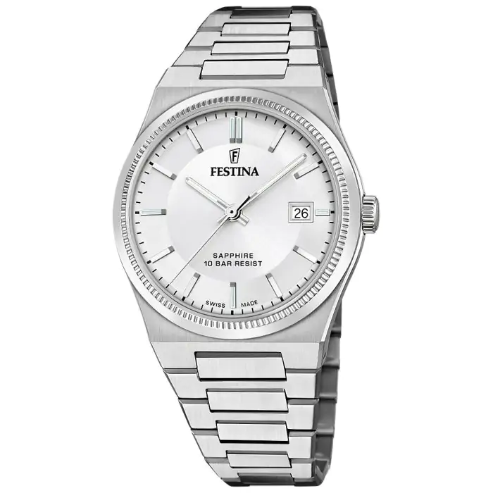 Marka Festina narodziła się w 1902 roku w szwajcarskiej miejscowości Le Chaux de Fonds. Nazwa Festina ma swoją genezę w powiedzeniu „Festina lente!” co można przetłumaczyć jako „spiesz się powoli”. To motto przywarło do marki, która od tej pory kojarzona była z zegarkami godnymi zaufania.