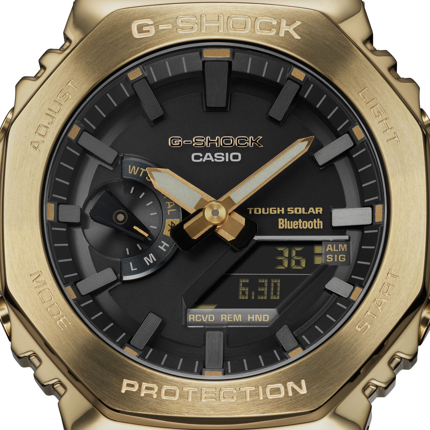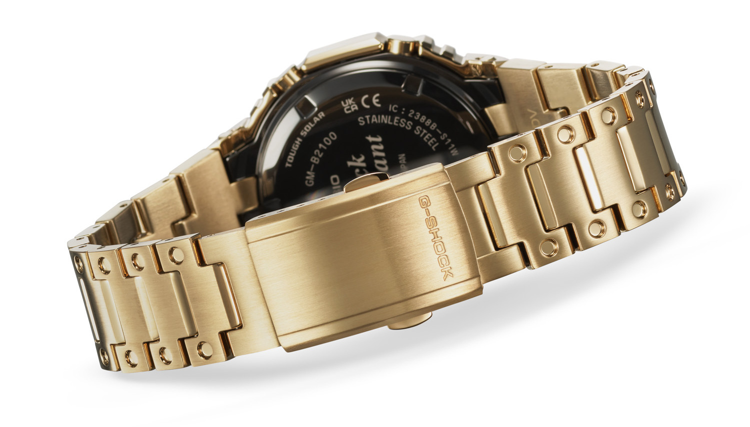 Jak przystało na zegarek G-Shock, model GM-B2100GD-9AER jest niezwykle wytrzymały. Kopertę tego wstrząsoodpornego zegarka wykonano ze stali szlachetnej. Dodatkowym zabezpieczeniem przed efektami uderzeń lub upadków jest warstwa nowoczesnego materiału Alpha Gel, który tłumi wibracje. Takie wyposażenie dba o ochronę mechanizmu modelu GM-B2100GD-9AER. Stalowa bransoleta z pełnych ogniw oraz koperta zostały pokryte powłoką IP, osłaniającą powierzchnię męskiego zegarka i nadającą mu fenomenalną, złotą barwę. W bransolecie zastosowano zapięcie motylkowe, które zapewnia komfortowe noszenie zegarka.