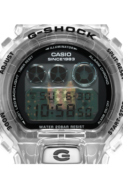 Przezroczyste materiały, z których zostały wykonane bransoleta, tarcza, obudowa oraz przyciski pozwalają na obserwację modułu. Dekiel zegarka ozdobony jest specjalnym logo z okazji 40-lecia marki. Zapięcie bransolety udekorowane jest wygrawerowanymi 4 gwiazdkami symbolizującymi każdą dekadę istnienia tej japońskiej marki. Transparentny design tego zegarka męskiego G-Shock DW-6940RX-7ER sprawia, że ten oryginalny zegarek świetnie dopełni Twoją stylizację.