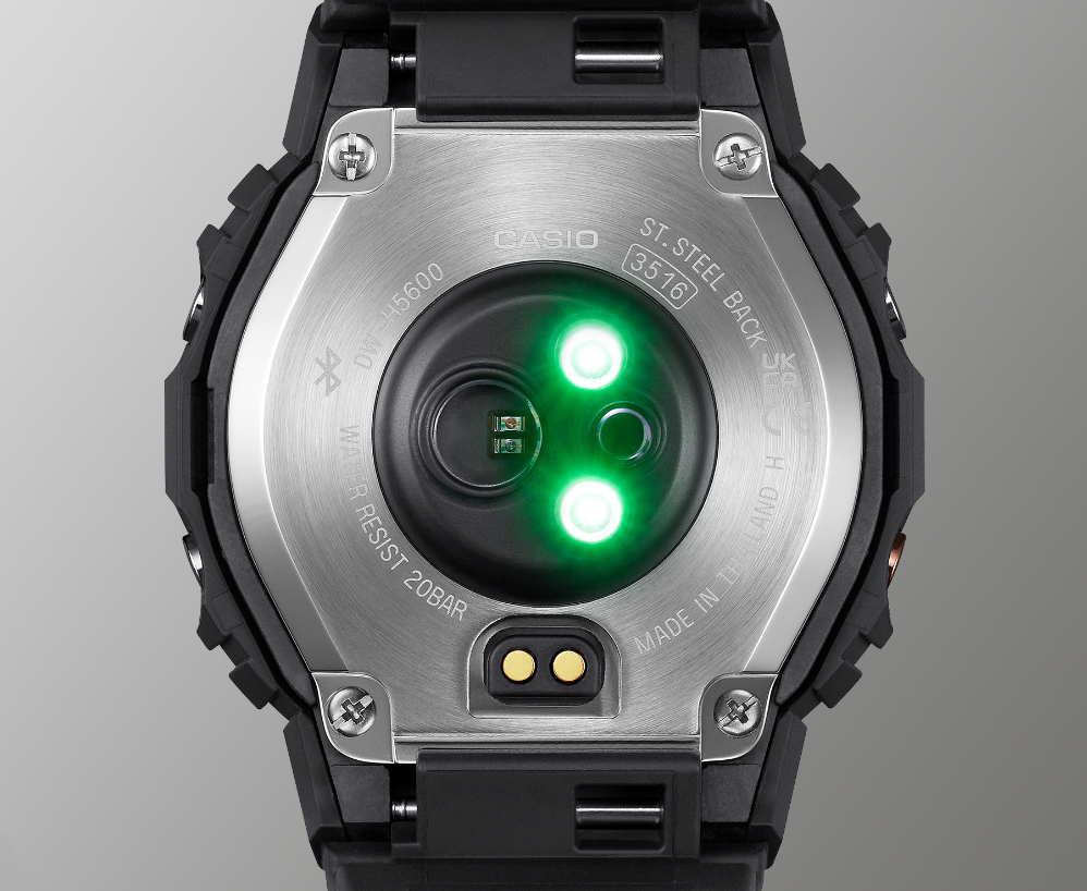 Zegarek DW-H5600MB-1ER wyposażony jest w czujnik optyczny — za sprawą światła Led pozwala Ci zmierzyć tętno. Licznik kroków pozwoli Ci prześledzić przebyty dystans. To nie koniec — aby uzyskać dokładniejsze pomiary odległości, wystarczy połączyć się z telefonem poprzez aplikację CASIO WATCHES. GPS smartfona dostosuje dane zarejestrowane przez akcelerometr zegarka.