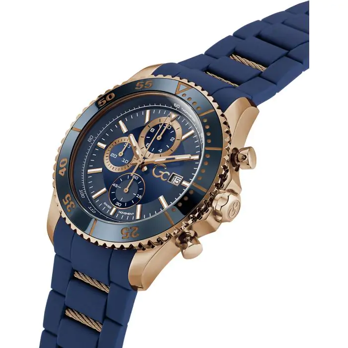 GC SpeedRacer Chrono Silicone Z51001G7MF to zegarek, który przyciąga uwagę odważną kolorystyką i sportowym duchem. Połączenie granatu z różowym złotem tworzy elegancki kontrast, który idealnie wpisuje się w styl nowoczesnych, aktywnych mężczyzn. Zegarek wyróżnia się nie tylko estetyką, ale także funkcjonalnością, co czyni go doskonałym wyborem na co dzień, jak i na bardziej formalne okazje.