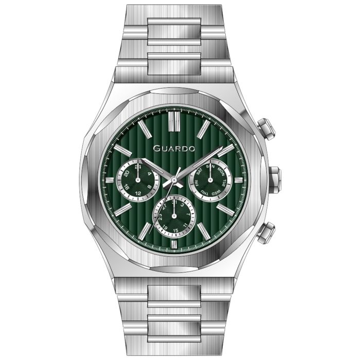 Koperta zegarka GUARDO 012741-2 wykonana jest z wysokiej jakości stali szlachetnej, co gwarantuje trwałość i odporność na uszkodzenia. Szerokość koperty wynosząca 43 mm sprawia, że zegarek prezentuje się solidnie i elegancko na nadgarstku. Srebrny kolor koperty podkreśla jego nowoczesny wygląd, który idealnie komponuje się z bransoletą. Bransoleta, również wykonana ze stali szlachetnej, zapewnia komfort noszenia i długą żywotność. Srebrny kolor bransolety harmonizuje z kopertą, tworząc spójną i stylową całość. Bransoleta wyposażona jest w solidne zapięcie, które gwarantuje bezpieczeństwo i wygodę użytkowania.