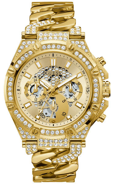 Daj się zaskoczyć męskiemu czasomierzowi Guess Baron GW0517G2, którego bajecznie bogate zdobienia idą pod rękę w parze z wybitną funkcjonalnością.