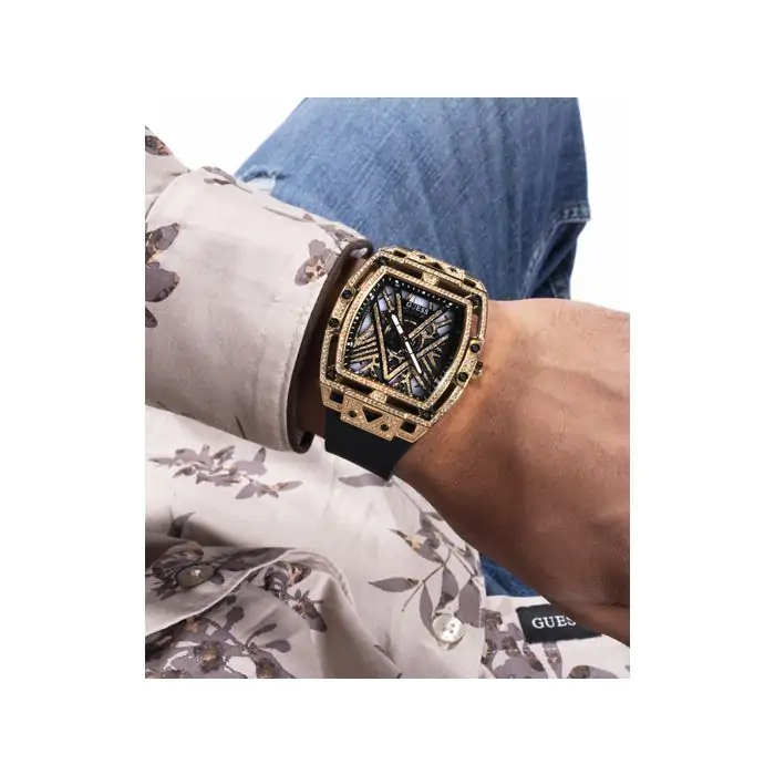 Zegarki Guess pojawiły się na rynku modowym w 1983 roku, niedługo po powstaniu marki. Charakterystyczne logo w kształcie odwróconego trójkąta jest dzisiaj rozpoznawalne na całym świecie. Zegarki Guess odpowiadają na najnowsze trendy w modzie i zaspokajają najbardziej wyśrubowane oczekiwania użytkowników. Zegarki Guess cechują się odważną stylistyką. Każdy model ma swój unikalny wzór, zgodny z najnowszymi i najgorętszymi trendami w modzie. Charakterystyczny design oraz materiały najwyższej jakości powodują, że marka jest bardzo często wybierana przez osoby, które chcą uzupełnić swój look stylowym zegarkiem.