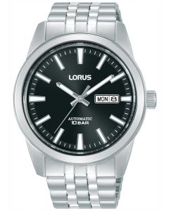 Czarna koperta męskiego zegarka Lorus RH921PX9 zyskuje swoją barwę za sprawą pokrywającej ją powłoki PVD. Materiał z którego odlano bryłę koperty to stal szlachetna 316L - stop metalowy charakteryzujący się wysoką wytrzymałością i odpornością na korozję.Wodoszczelność czasomierza została określona na 10bar, dzięki czemu nie straszne są mu zachlapania na które mógłby być narażony podczas mycia rąk czy też kąpieli. Zegarek zawieszono na czarnej bransolecie ze stali szlachetnej, zabezpieczanej na nadgarstku za sprawą potrójnie składanego zapięcia.