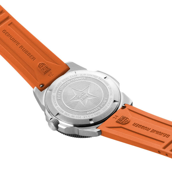 Ten zegarek męski Luminox Pacific Diver wynosi 200 m (20 bar). oznacza to, ze możesz pływać oraz nurkować z akwalungiem z tym czasomierzem Luminox na ręce.