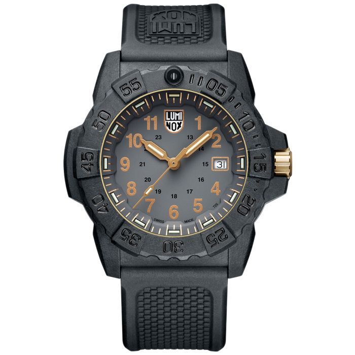 Koperta zegarka Luminox XS.3508.GOLD została wykonana z innowacyjnego materiału CARBONOX™, który jest nie tylko trwały, ale także lekki, co sprawia, że zegarek jest komfortowy w noszeniu. Jego rozmiar 45mm nadaje mu solidności i męskiego charakteru. Koperta jest dodatkowo wzmocniona stalowymi śrubami, co zwiększa jej odporność na ekstremalne warunki. Gumowy pasek o czarnej barwie zapewnia wygodę noszenia, a klamra zrobiona jest z wysokiej jakości stali nierdzewnej (316L), wykończonej czarną powłoką IP, co dodaje zegarkowi elegancji.