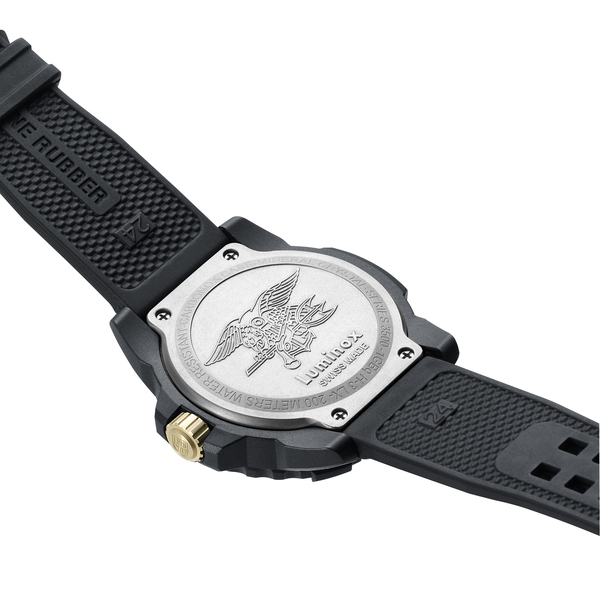 Wodoszczelność zegarka Luminox XS.3508.GOLD wynosi 200m, dzięki czemu może on towarzyszyć Ci przy wszelkich kontaktach z wodą, od zachlapań, przez kąpiele, aż po nurkowanie z czasomierzem na nadgarstku.