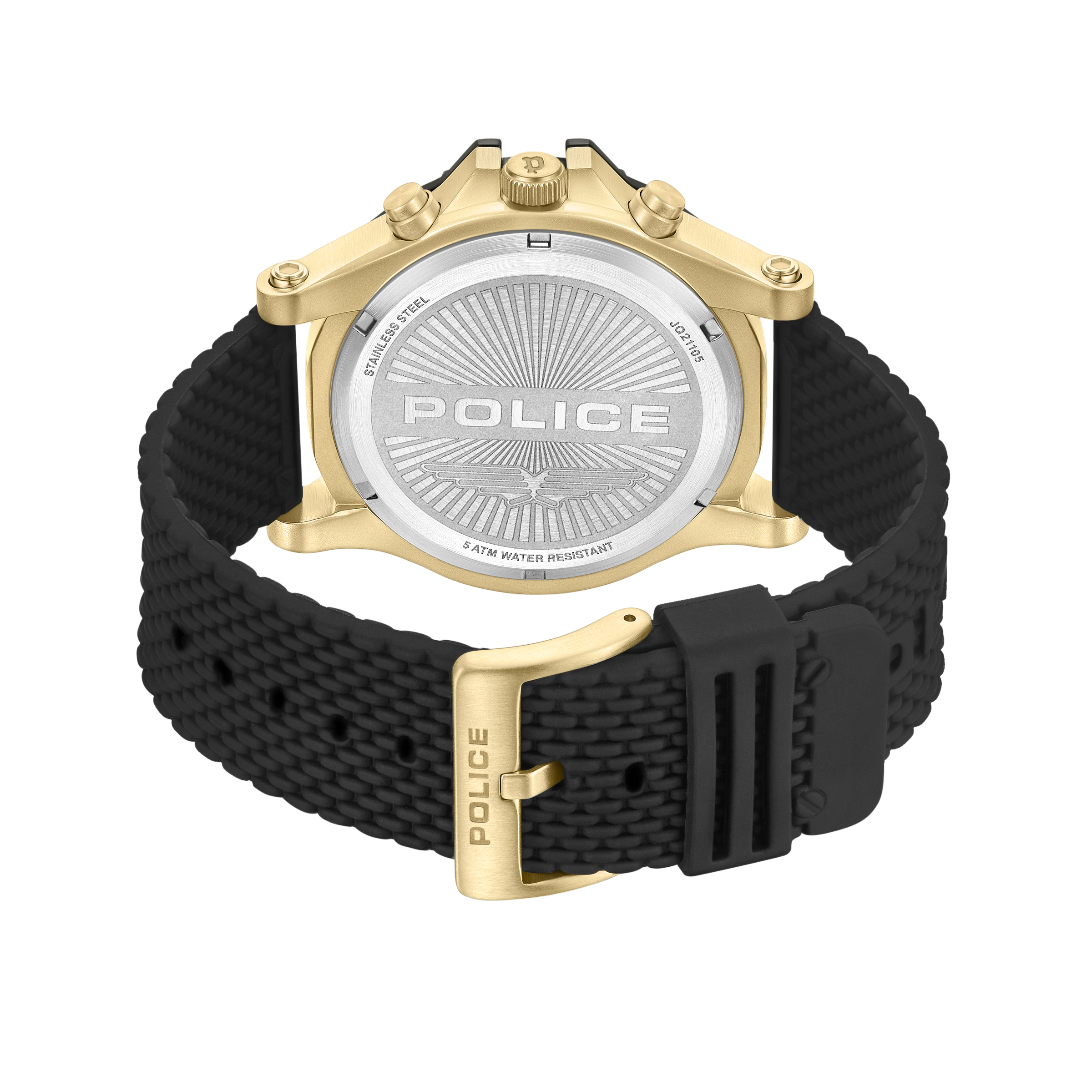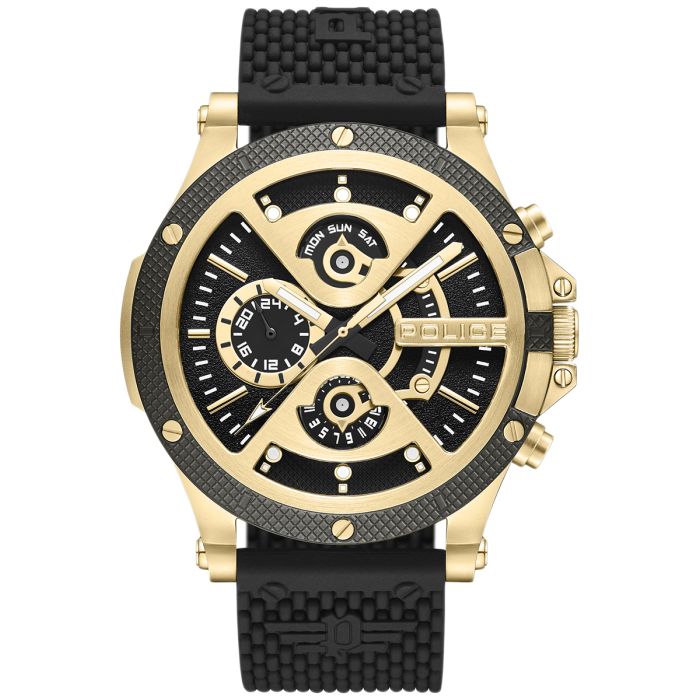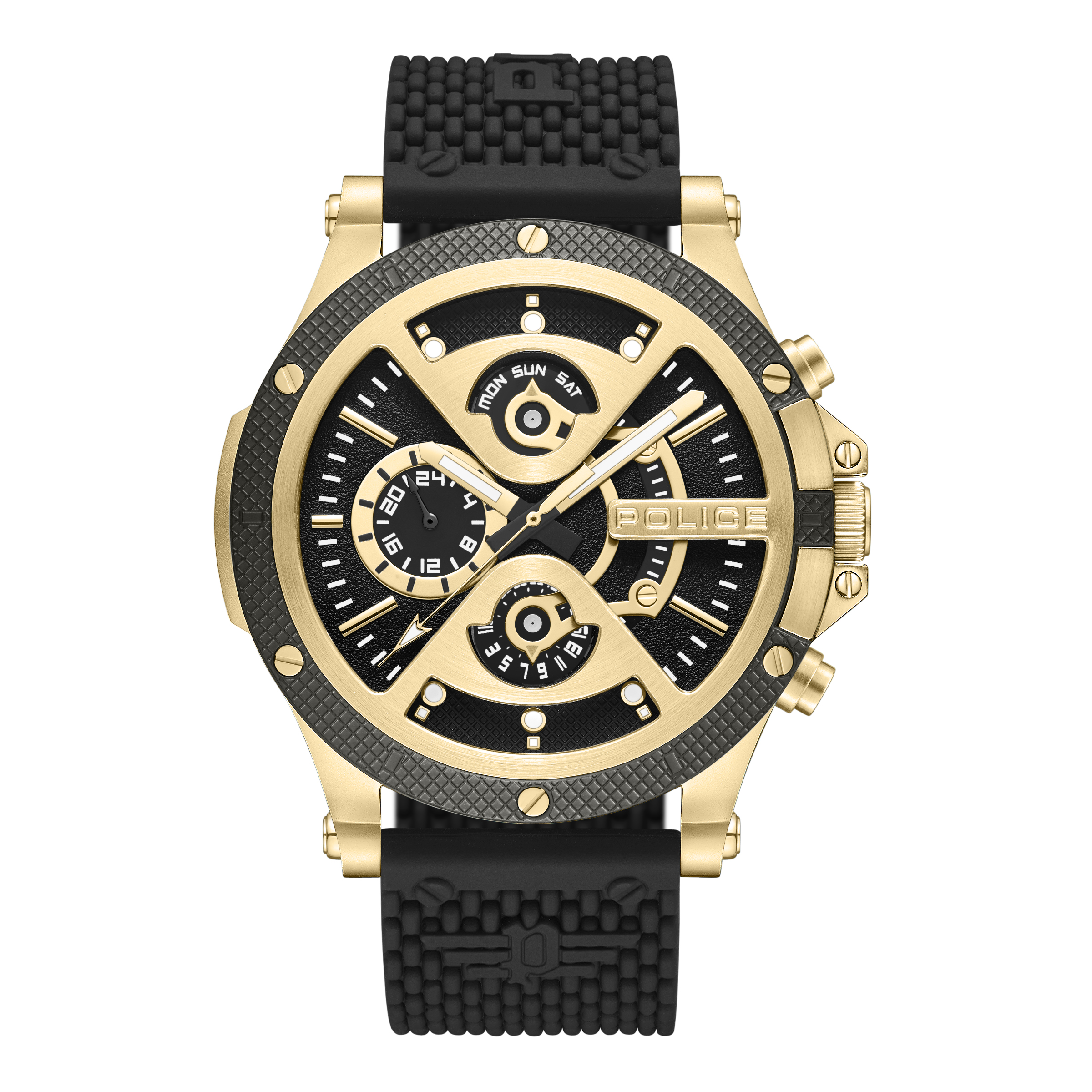 Police Surigao PL.PEWJQ2110501 to męski zegarek, który doskonale łączy wyrazisty design z praktycznymi funkcjami. Stworzony z myślą o nowoczesnych mężczyznach, wyróżnia się eleganckim czarno-złotym wykończeniem i trwałością, która sprosta codziennym wyzwaniom. Dzięki wysokiej jakości materiałom i niezawodnemu mechanizmowi, ten model to świetny wybór zarówno na co dzień, jak i na wyjątkowe okazje.