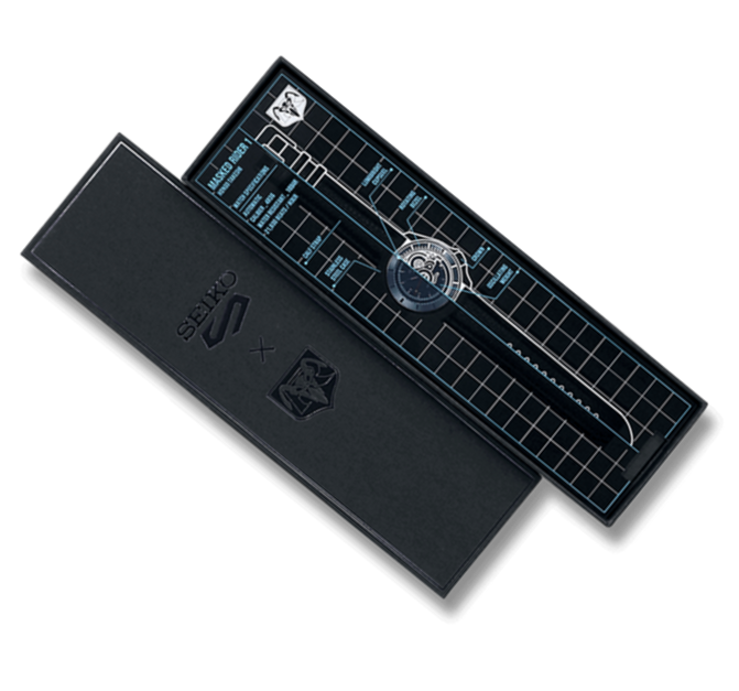 Przygotuj się na rocznicę jakiej jeszcze nie było! Limitowana propozycja dla mężczyzn pod postacią modelu Seiko 5 Sports 55th Anniversary Masked Rider Limited Edition SRPJ91K1 to wynik absolutnie szalonej kolaboracji marki Seiko z kultowym serialem z lat 70-tych - “Gwiezdny Rycerz” (ang. “Masked Rider”), autorstwa Shotaro Ishinomori oraz produkcji Toei Company. Wyjątkowość edycji podkreśla ilość sztuk wypuszczona na rynek, zamykająca się w 4000 zegarków oznakowanych indywidualnym numerem seryjnym.