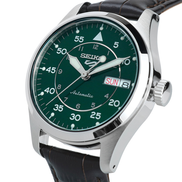 Doskonały dodatek do garnituru i na co dzień, męski zegarek Seiko 5 Sports Automatic Field Suit Style 36mm SRPJ89K1 to elegancka pozycja, przyciągająca spojrzenia swą piękną, zieloną tarczą.