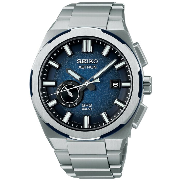 Niebieska tarcza modelu SSJ023J1 nadaje zegarkowi elegancki i wyrafinowany charakter, a jej kolor kontrastuje z wyraźnymi indeksami, zapewniając łatwy odczyt czasu. Tarcza chroniona jest wytrzymałym szkiełkiem szafirowym, które jest odporne na zarysowania. Model ten oferuje praktyczne funkcje, takie jak wieczny kalendarz, wskaźnik rezerwy chodu oraz automatyczne dopasowanie strefy czasowej za pomocą sygnału GPS, co jest niezastąpione podczas podróży.