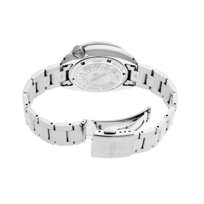 Ten zegarek męski Seiko Prospex posiada srebrną kopertę oraz bransoletę wykonaną ze stali szlachetnej 316L, cechującej się wysoką odpornością na korozję. Trójogniwowa bransoleta zapinana jest na bezpieczne i wygodne zapięcie motylkowe na dwa przyciski. Do zestawu został dołączony nylonowy pasek w szarym kolorze, dzięki czemu łatwo dostosujesz zegarek do sytuacji oraz stylizacji.