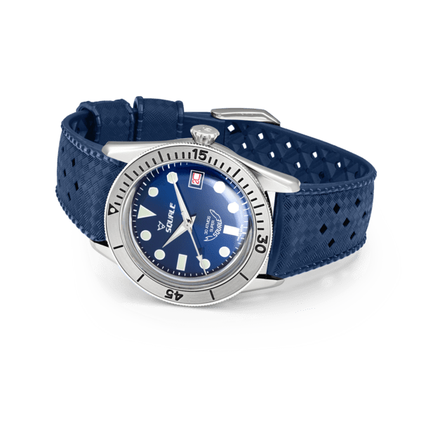 Kopertę divera Squale zaprezentowano na niebieskim, silikonowym pasku włoskiego pochodzenia. Dzięki wysokiej jakości wykonania ułoży się on wygodnie na Twoim nadgarstku.
