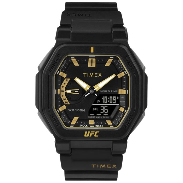Timex UFC TW2V55300 to dynamiczny model zaprojektowany z myślą o młodzieży i osobach aktywnych, które cenią sportowy styl i praktyczne funkcje. Inspirowany światem MMA, zegarek wyróżnia się wytrzymałością, nowoczesnym designem oraz niezawodnym mechanizmem kwarcowym. Dzięki wstrząsoodpornej konstrukcji i wodoszczelności na poziomie 100 m doskonale sprawdzi się w różnych warunkach, zarówno podczas codziennych wyzwań, jak i sportowych aktywności.