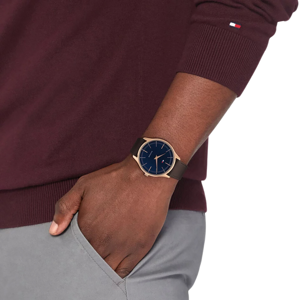 Tommy Hilfiger Adrian 1710466 to elegancki zegarek męski, który idealnie łączy w sobie nowoczesny design i klasyczny styl. Stworzony przez renomowaną markę Tommy Hilfiger, model ten jest doskonałym wyborem dla mężczyzn ceniących modę i funkcjonalność. Dzięki swojej wyrafinowanej estetyce, zegarek ten sprawdzi się zarówno w codziennych, jak i formalnych stylizacjach.