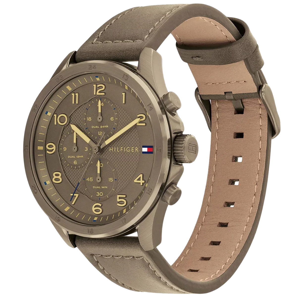 Zegarek TOMMY HILFIGER Axel 1792005 wyposażony jest w tarczę o eleganckim brązowym odcieniu, który nadaje mu klasyczny i wyrafinowany wygląd. Klasyczne wskazówki umożliwiają łatwy i szybki odczyt czasu, co czyni zegarek niezwykle funkcjonalnym. Tarczę chroni mineralne szkiełko, które jest trwałe i odporne na zarysowania, a w razie potrzeby można je łatwo wypolerować, przywracając mu nieskazitelny wygląd.