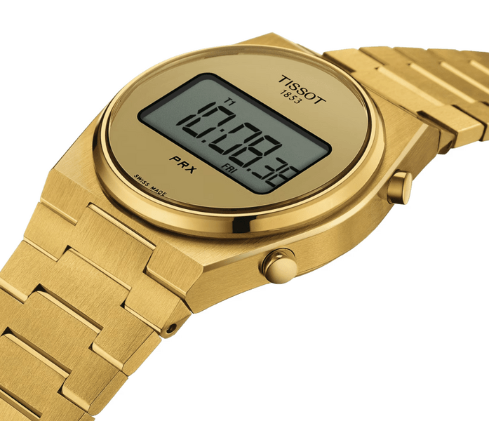 Tissot PRX Digital T137.263.33.020.00 to wyjątkowy zegarek, który stanowi połączenie legendarnego projektu PRX z 1978 roku z nowoczesną technologią cyfrową. Ten model reprezentuje harmonię minionych epok i cyfrowej rewolucji, oferując zarazem mnóstwo nowoczesnych funkcji dla współczesnych pionierów.
