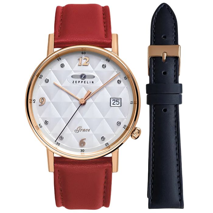 Elegancki zegarek damski ZEPPELIN ZE-7443-1_N-SET wyróżnia się wykonanym z dbałością o nawet najmniejszy szczegół cyferblatem. Jej klasyczny design sprawia, że doskonale sprawdzi się jako dodatek zarówno oficjalnych, jak i codziennych stylizacji.
